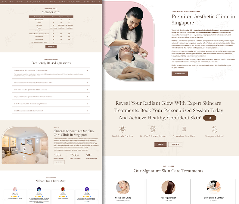 Skin Creation SG is a clean and informative website for a skincare clinic. It explains treatments in simple words and helps users understand skincare services easily. The website is fast, easy to use, and supports customer inquiries and contact requests.